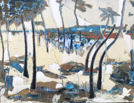 For the same reason, moving a lot of pigment quickly in order to enhance spontaneity, I have recently begun a new technique; mixing oil paint with cold wax resins. Building layers I can cover surfaces rapidily, paint, scratch and gouge, adding and subtracting, forming deep textures and accenting the surfaces of my compositions.
